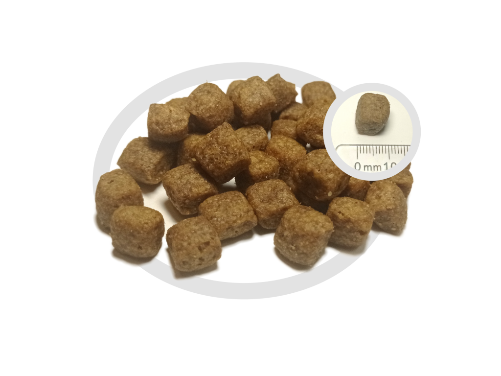 Krmivo podáváme v suchém stavu, popřípadě přelité vlažnou vodou, nebo vlažným vývarem. Po přelití doporučujeme podávat za 10 minut, až granule nasáknou tekutinu.