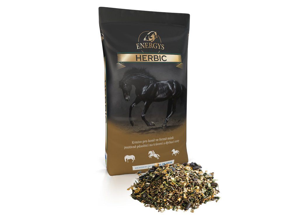 Müsli Herbic je vhodným krmivem pro koně v lehké až střední zátěži. Krmivo neobsahuje oves. Svým složením napomáhá odbourávat stres při sportovních výkonech a transportech. Zároveň obsahuje směs bylin (kopřiva, bazalka, fenykl, máta, rozmarýn), které příznivě působí na dýchací cesty a trávení koní.