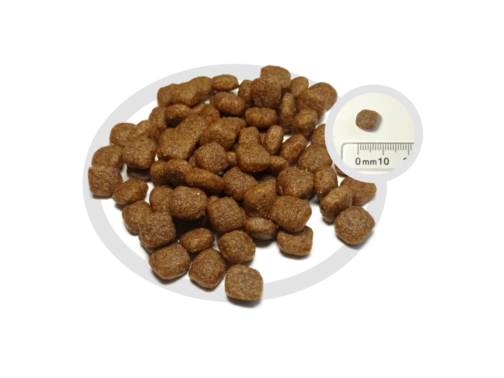 Praktické balení 12 kg. Složení: dehydrované krůtí maso 21%, čerstvé maso 18% (drůbeží, vepřové, hovězí), bílá rýže, hnědá rýže, kukuřičný protein, drůbeží tuk, kukuřičná krupice, řepná dužina, sušené mořské ryby, lososový extrakt, směs sušeného ovoce, extrakt z drůbežích jater, ostropestřec mariánský, yucca, mořská biotické složky, minerální látky a vitamíny. Způsob krmení: Krmivo podáváme v suchém stavu, popřípadě přlité vlažnou vodou, nebo vlažným vývarem. Po přelití doporučujeme podávat 10 minut, až granule nasáknou tekutinu. Zvířeti je nutno zajistit t E1) 183 mg/kg